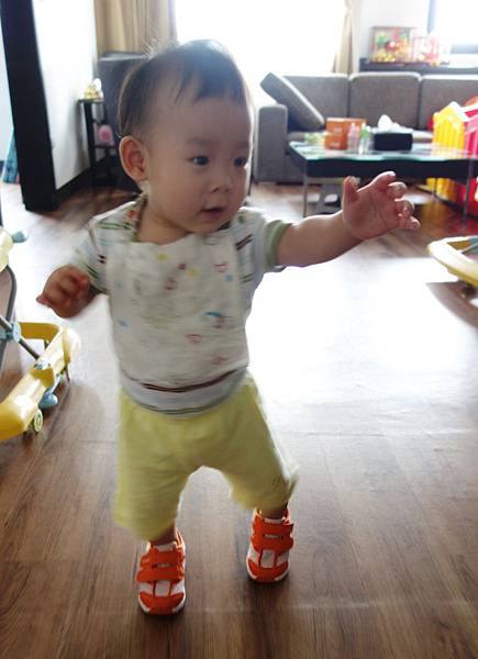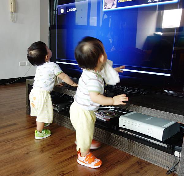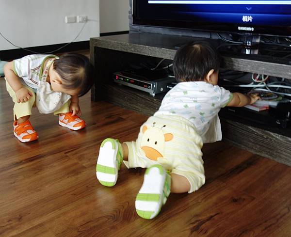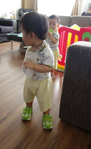 弟弟站的比較穩,還可以到處走動開始亂動人家的東西!!