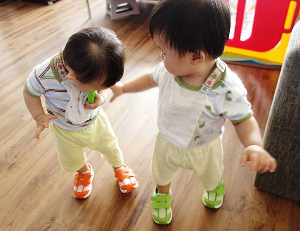 當兩個都同時穿上鞋子也就是龍媽最累的時候,因為一定要顧2個真的超累的!!