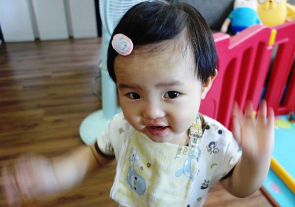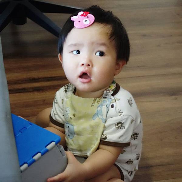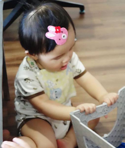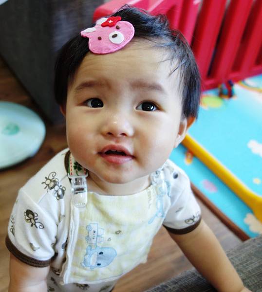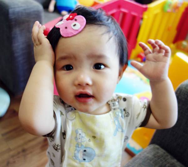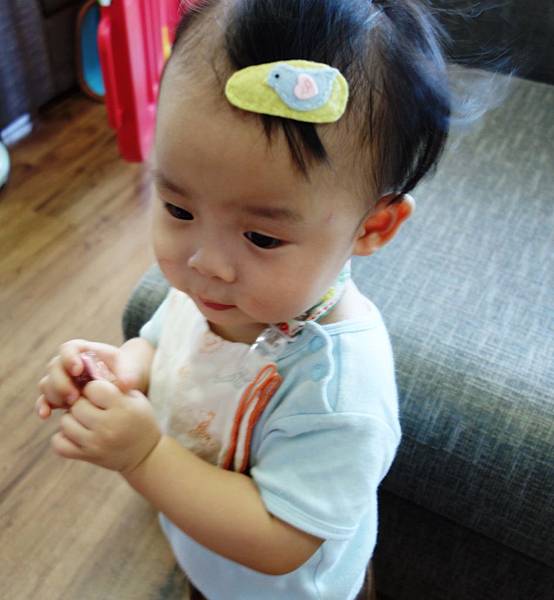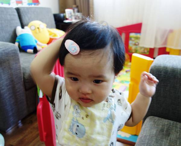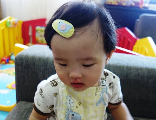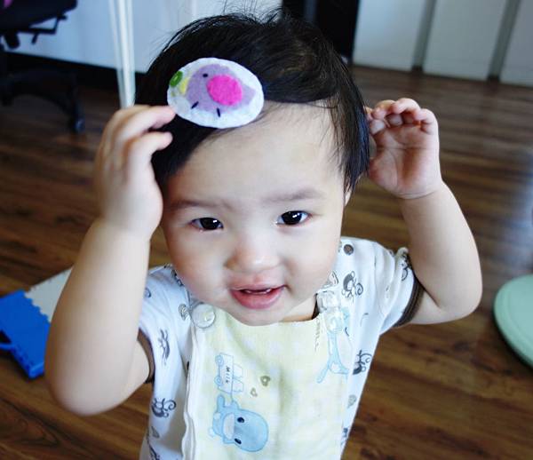 小不點的頭毛只有一點點所以戴上自己好像也覺得好怪哦!!